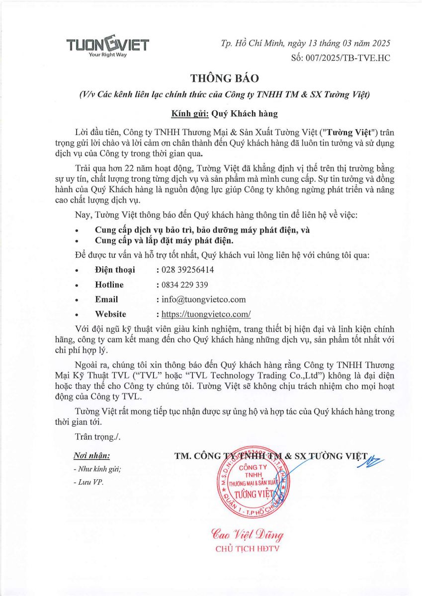 Kênh liên lạc chính thức của Tường Việt